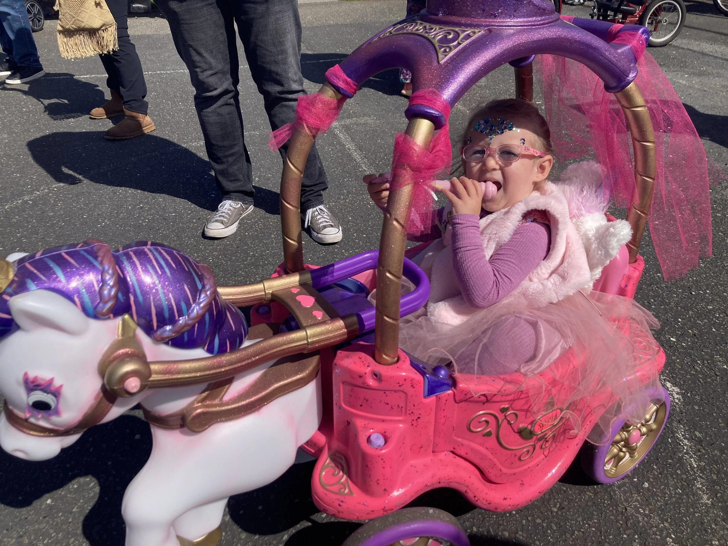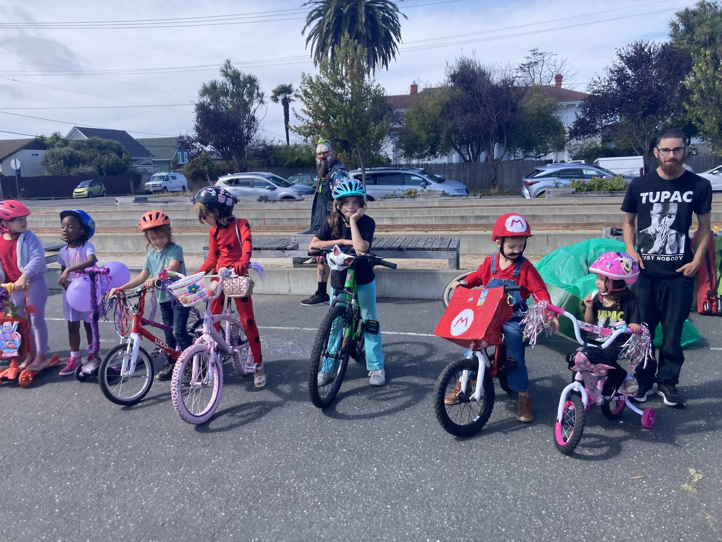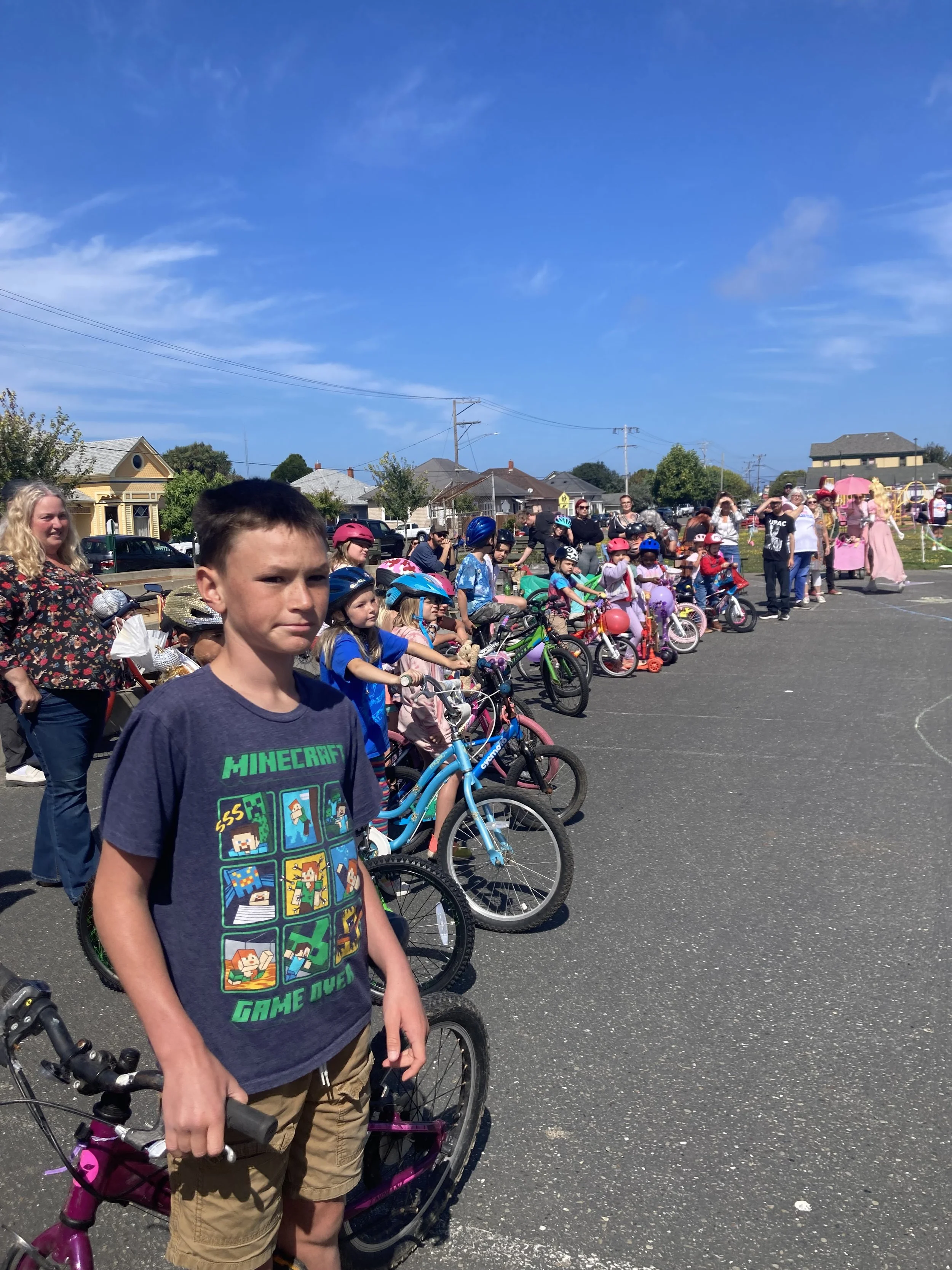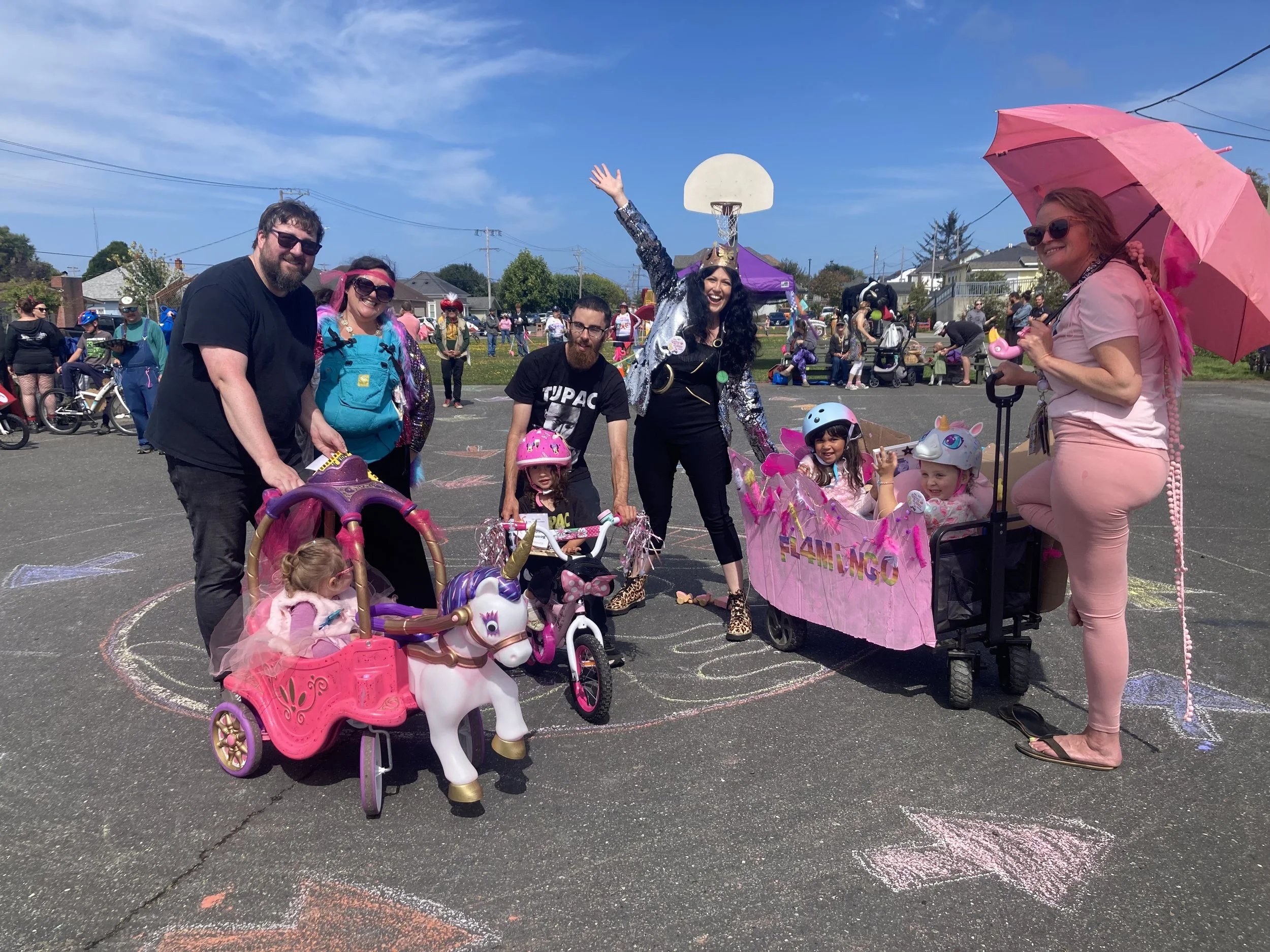 Kids K-3rd Grade in teams on decorated bikes, strollers, etc. navigating an obstacle course for the glory focusing on art, teamwork, and speed.
